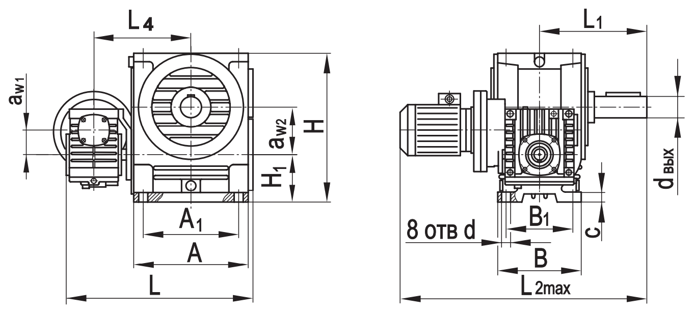 Типоразмер аW1 аW2 А А1 В В1 L* L1* L2max L3* L4 Н Н1 с d dвх dвых