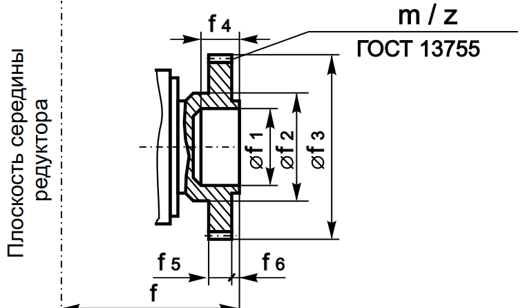Размеры конца тихоходного вала в виде зубчатой полумуфты с паразитной шестерней