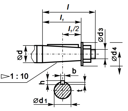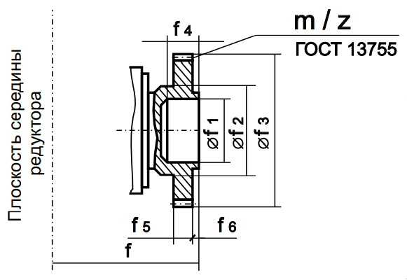 Размеры конца тихоходного вала в виде зубчатой полумуфты