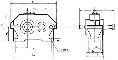 Габаритные и присоединительные размеры редукторов 1Ц3У